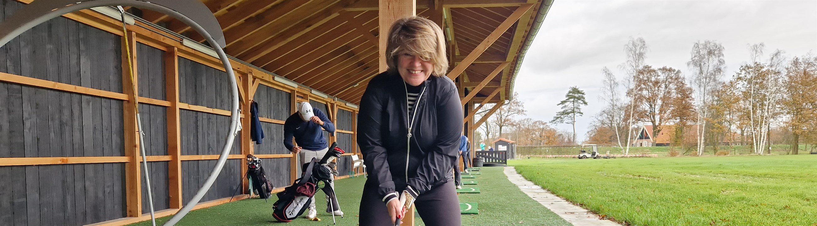 Dus besluit ik samen met collega Roy, die net z’n handicap 54-registratie heeft behaald via de ANWB Weekendcursus, een paar lessen te nemen. Voordeel: het is goedkoper en gezelliger dan alleen. Nadeel: ik moet om praktische redenen wisselen van golfpro. Voor Roy is de afstand anders te groot, dus kiezen we letterlijk voor de middenweg en komen uit bij Marc, bij wie Roy al een les achter de rug had.