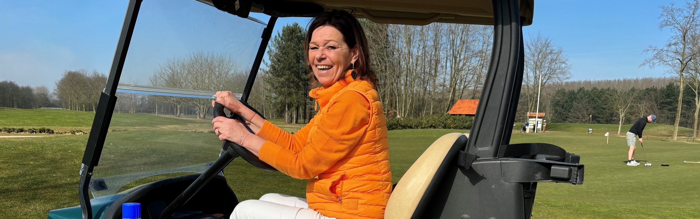 Dat klopt. Vanwege een sluimerende griepaanval bij de GOLF.NL-verslaggever, gaat het plan om samen de baan te spelen helaas niet door. We rijden door de baan in de buggy van Smit. “Toen ik hier drie jaar terug kwam werken, vond het bestuur dat ik als clubmanager een eigen buggy moest hebben. Ik heb daar heel hard om gelachen. Dit is dus officieel de buggy van Patty, maar iedereen mag er van mij in rijden, hoor.”