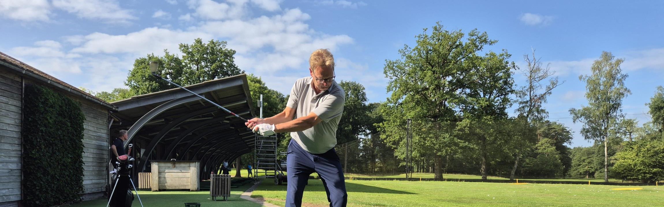 Getreuzel in de baan, Eric heeft er een broertje dood aan. Peinzen welke club er uit de tas gehaald moet worden, oplijnen, drie oefenswings maken, terug stappen om vervolgens weer opnieuw te beginnen? Nee, dit soort taferelen zul je niet waarnemen bij de nuchtere Enschedeër. “Staan en slaan”, klinkt het kort en bondig. “Ik doe niet aan oefenswings. Iedere gek z’n gebrek, maar dit werkt het beste voor mij.”