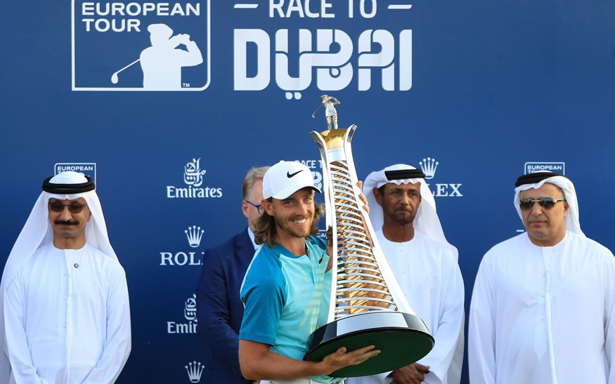 An emotional @TommyFleetwood1 learns that he is the 2017 #RaceToDubai champion. pic.twitter.com/ug9TbDNTUp