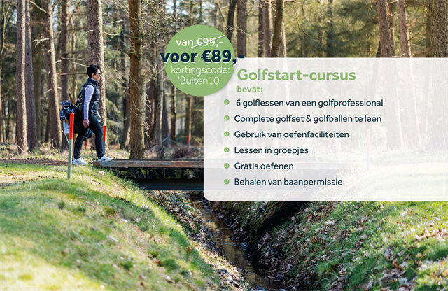 Vind een club bij jou in de buurt en boek een Golfstart-cursus met de kortingscode 'Buiten10'.