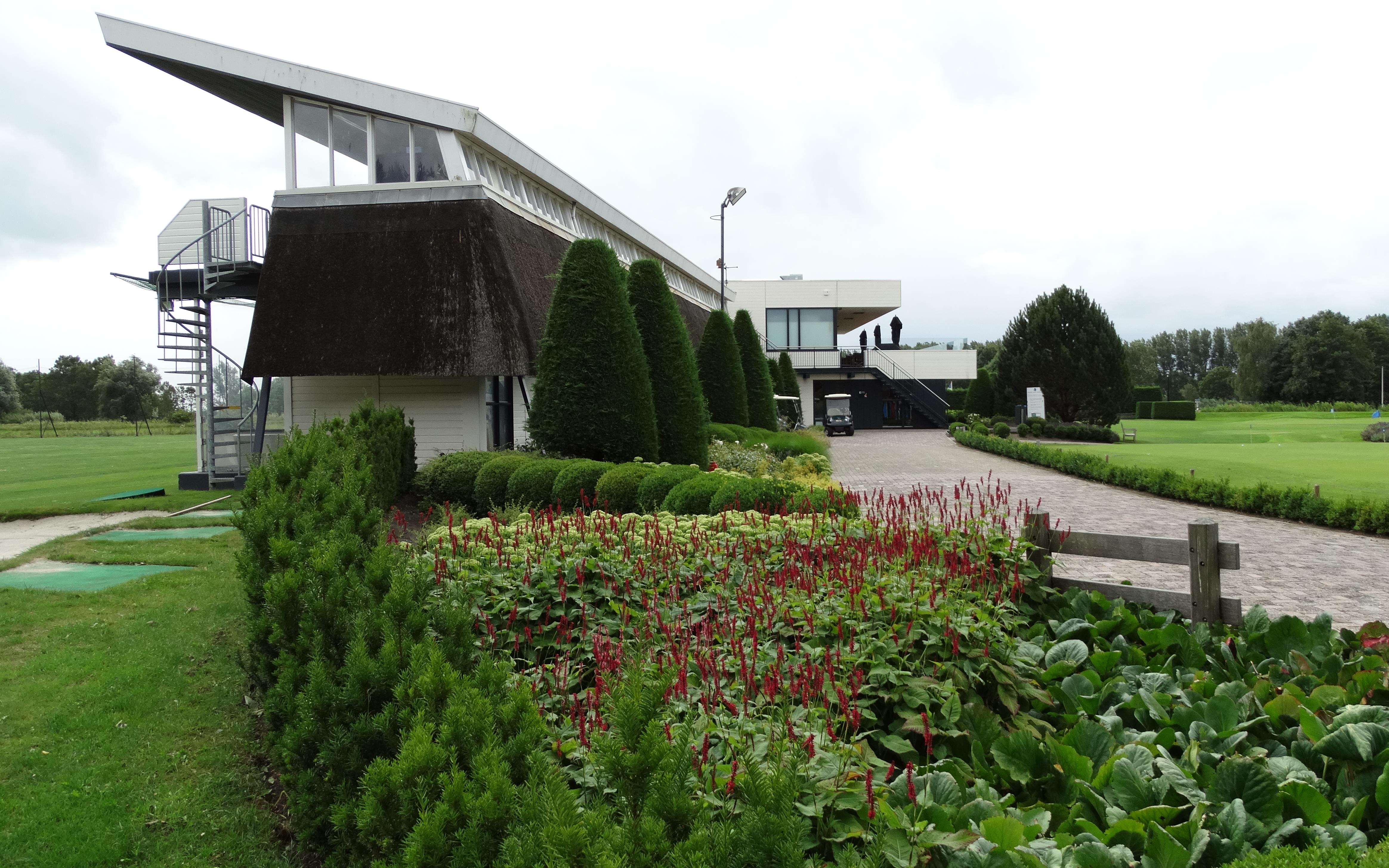Het clubhuis en de range, met een deels rieten dak, vormen één langgerekt gebouw en wij vinden het een prachtig architectonisch geheel. De baan wordt aan de ene kant begrensd door huizen, aan de andere kant door polder, de Kagerplassen en de molen. Een mooie omgeving en veel Hollandser krijg je het niet. Het betekent ook rust en stilte; je hoort eigenlijk alleen schapen, fietsers en motorbootjes op de Kaag. De club doet het heel goed, er is weer een wachtlijst.