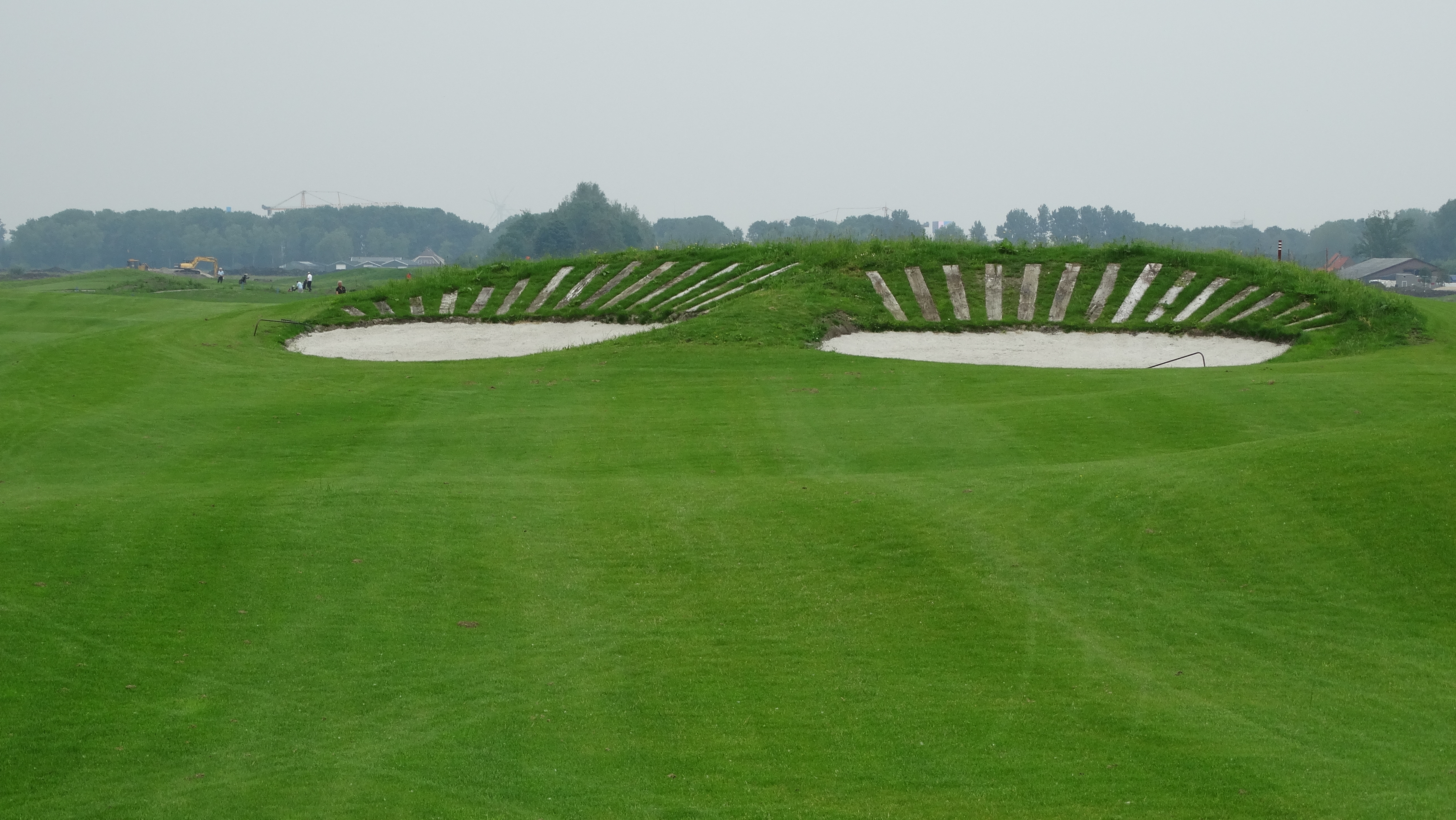 Veel golfers hebben de baan al uit de auto gezien omdat hij pal aan de A27 ligt. Weliswaar zijn nog maar negen van de achttien holes klaar – kranen en tractors zijn druk bezig met de andere negen en met een par-3 baan – maar nu al is duidelijk dat Nederland er een topbaan bij krijgt als het helemaal af is.