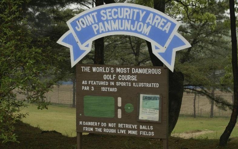 De hole is gevaarlijk omdat de par 3 tussen mijnenvelden ligt. VN-soldaten slaan er vaak een balletje maar laten afzwaaiers liggen. 'Live mine field; ga niet achter ballen in de rough aan', staat op een bordje. Lees hier meer over Camp Bonifas.