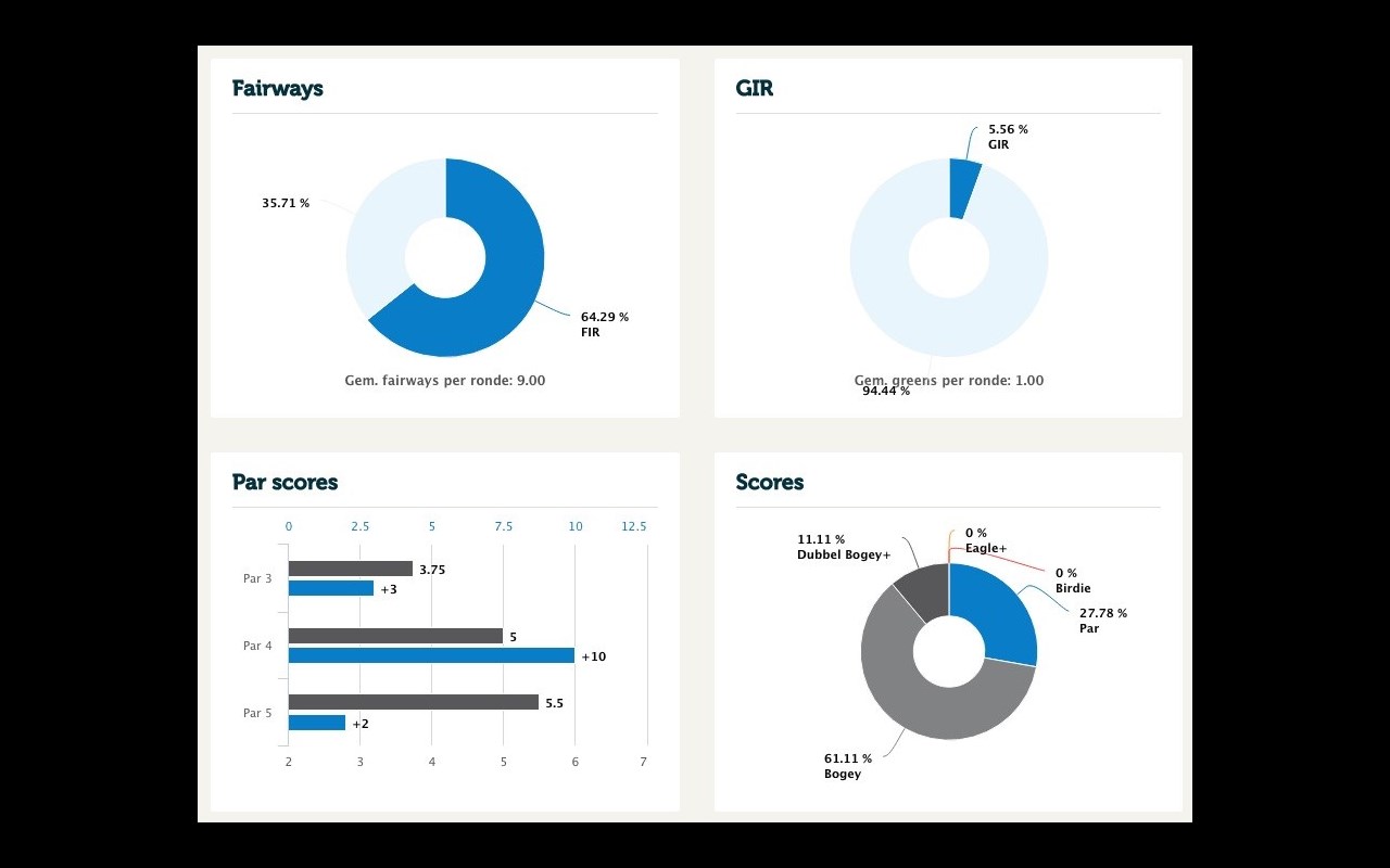 Wil je ook statistieken zoals 'FIR' bijhouden (zie hieronder enkele grafieken), meld je dan gratis aan bij De Golf Academie van de NGF en PGA Holland.