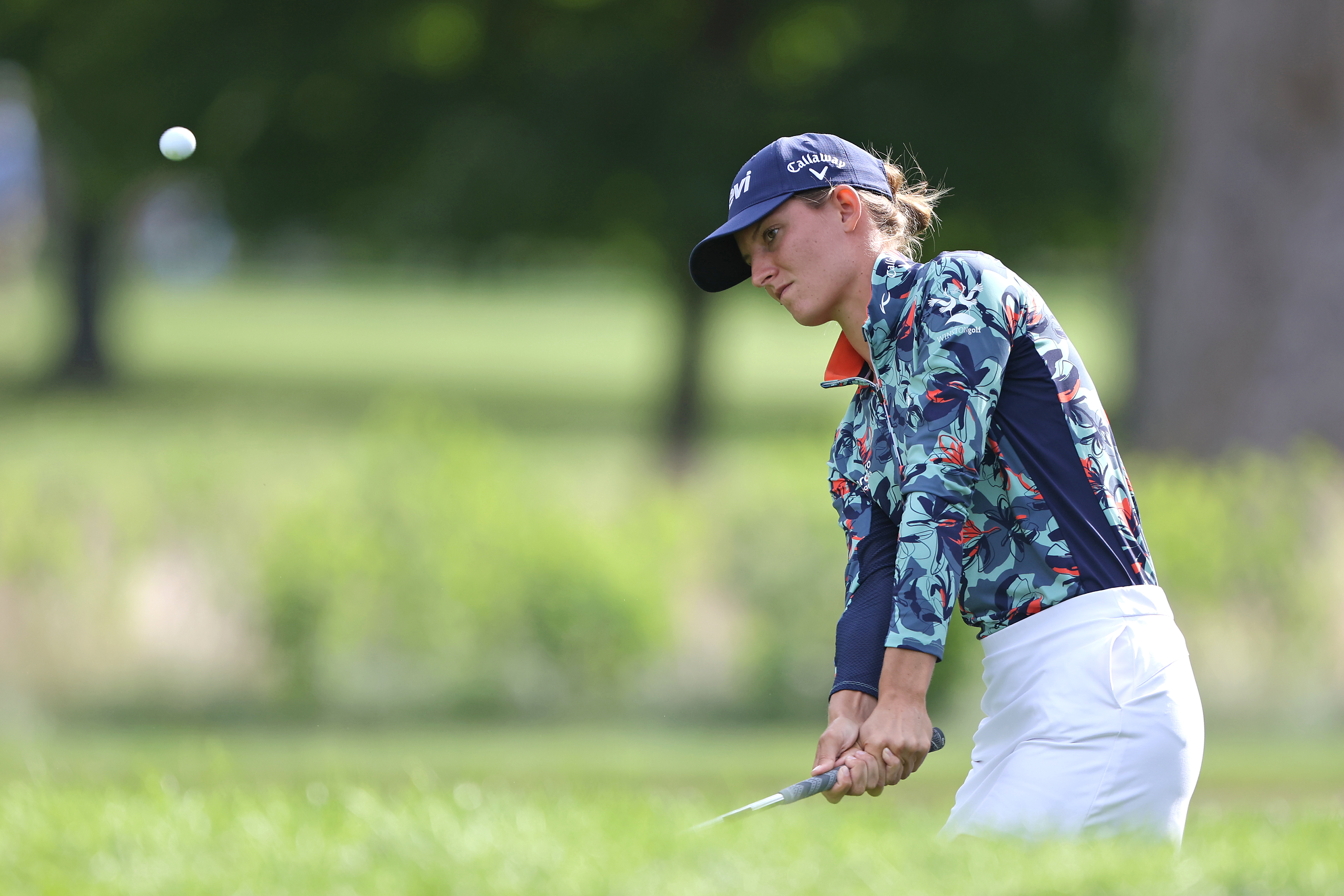 Als je de beginstand inneemt en naar beneden kijkt, kijk je recht in het clubblad. Maak je backswing en draai vervolgens je hoofd om de positie van het clubblad te controleren. Als de loft mooi op de club is gebleven, kijk je nog steeds recht in het clubblad. Tijdens de hele bunkerslag wil je de loft op de club houden, dus ook voorbij de bal. Probeer bij het oefenen te voelen wat je moet doen met je handen om de loft op de club te houden.