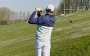 Op de drivingrange ga je de swing in een slow motion van 1 minuut uitvoeren. Je neemt de juiste basishouding aan en maakt heel langzaam je achterzwaai. Zet goed spanning op je spieren en zet de downswing in, je benen bewegen mee, je raakt de bal en je eindigt met je gewicht op links. Je armen zijn helemaal lang en je staat stil in een mooie eindstand. Check hoelang je erover gedaan hebt. Te snel? Nog een keertje proberen!