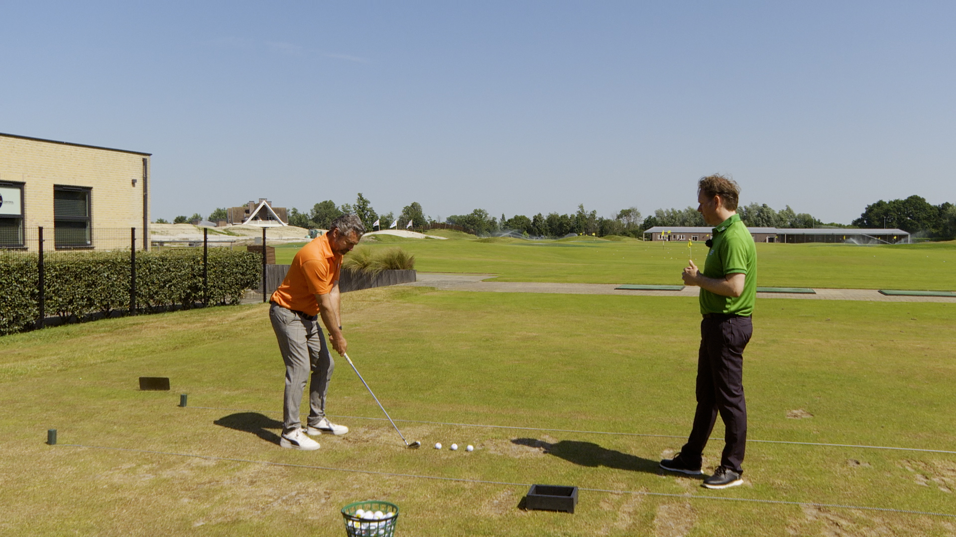 Zoek steeds een andere situatie rondom de oefengreen. Begin met een standaard-chip. Kies een vlakke fairway-ligging en redelijk wat green om mee te werken. Wanneer je hebt bepaald hoe je de bal wilt spelen en je achter de bal staat, stel je dan voor: wat zie je als je boven de bal staat, hoe het voelt om je stand in te nemen, hoe voelt de swing en het contact, hoe vliegt je bal, rolt en eindigt hij? Vervolgens voer je de slag uit.