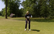 Kies een speelplek die uitnodigt om een distantwedge-shot te spelen (lange vluchtfase en weinig rol). Bijvoorbeeld op de fairway op 70 meter van de hole. Afhankelijk van jouw afstanden en wedge set-up gebruik je een pitching-, een gap-, een sand- of lobwedge. Neem 2 toursticks: 1 op de grond tussen je voeten; je bal, parallel aan de bal-doellijn en 1 om de stand van je clubblad en je lichaamslijnen te controleren. Je voetstandbreedte is heupbreed, je linkervoet draai je een fractie open en je gewicht is voor 60% op je linkerkant. Vervolgens speel je de bal naar de hole, waarbij je erop let dat je voornamelijk vanuit het lichaam de beweging maakt. Dus je handen, bovenlichaam en heupen gaan samen door het schot heen.