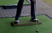 Voor deze oefening heb je een rocking board nodig, dit is een plankje met een klein latje eronder waardoor dit een soort wipwap wordt. Ga op het plankje staan en neem je beginhouding in waarbij je de druk op je linkerbeen zet. Je maakt vervolgens je backswing en als je dat goed doet, tikt de rechterkant van het plankje tegen de grond aan. Op het moment dat je je backswing afmaakt zou je eigenlijk al de linkerkant van het plankje tegen de grond aan moeten tikken. Dus je beweegt naar rechts, naar links en dan pas hoor je dat je club de mat raakt.