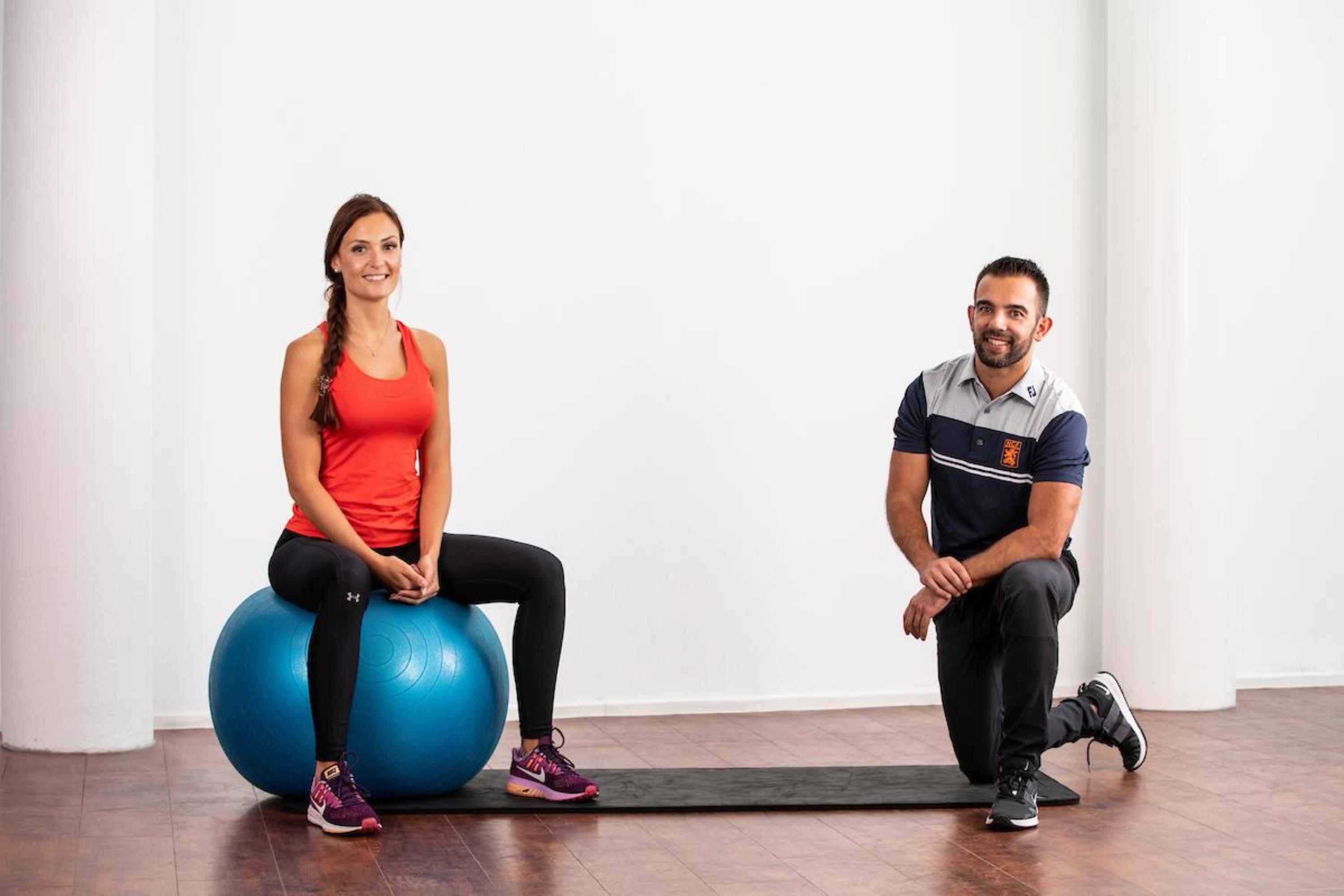 Starthouding: Kom zitten op één knie en één voet waarbij je voet dwars staat ten opzichte van je knie. Zorg dat alles in lijn staat met elkaar. Beide voeten in een rechte lijn met de knie, heupen en schouders recht naar voren.