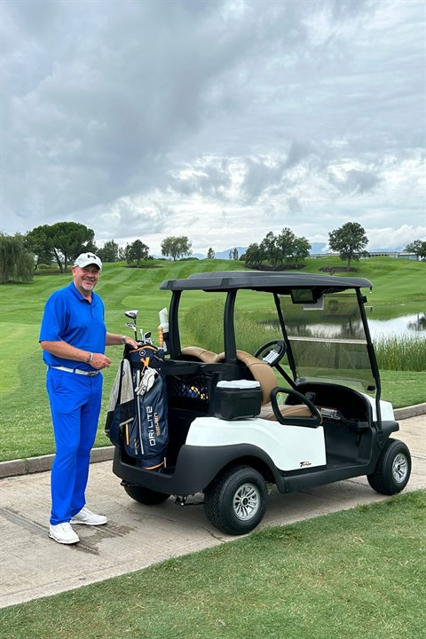 In al die decennia heeft hij naar eigen zeggen nog nooit een ronde van 9 holes gespeeld. En wat nou als de fysieke gesteldheid met de jaren een volle ronde bemoeilijkt? "Dan wordt het een buggy. Simpel. Maar zolang het nog gaat, lopen we altijd. Alleen de tijd van je tas op de rug is wel geweest, we hebben nu een mooie elektrische trolley."