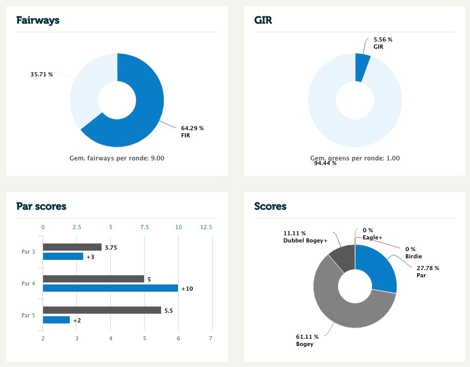 Wil je ook statistieken zoals 'FIR' bijhouden (zie hieronder enkele grafieken), meld je dan gratis aan bij De Golf Academie van de NGF en PGA Holland.