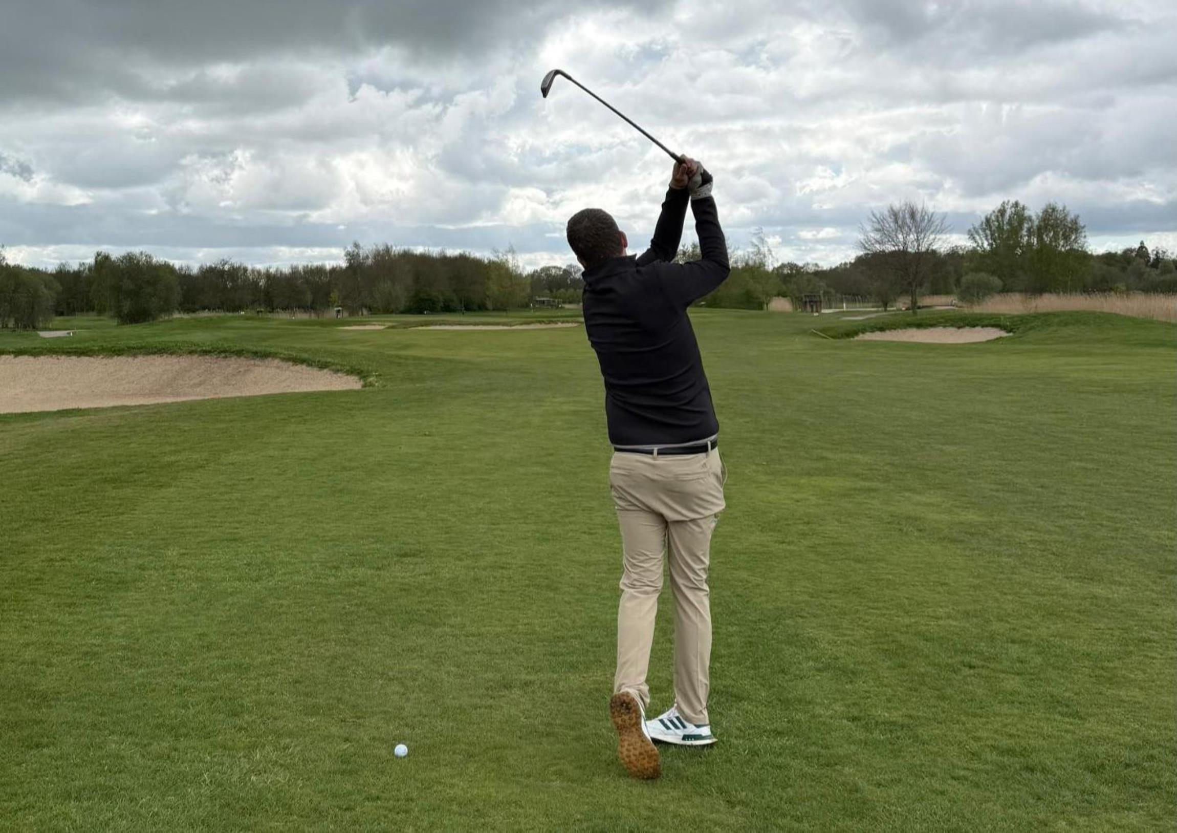 Op hole 10 volgt eerst het hoogtepunt van de dag. Na een solide drive - midden fairway - en een net niet zuivere approach, maak ik een up & down vanuit de bunker. Er gaat weinig boven dat doffe gevoel van de club die dankzij de bounce door het zand glijdt en de bal – mét spin – dicht bij de vlag laat landen. Weer een par!