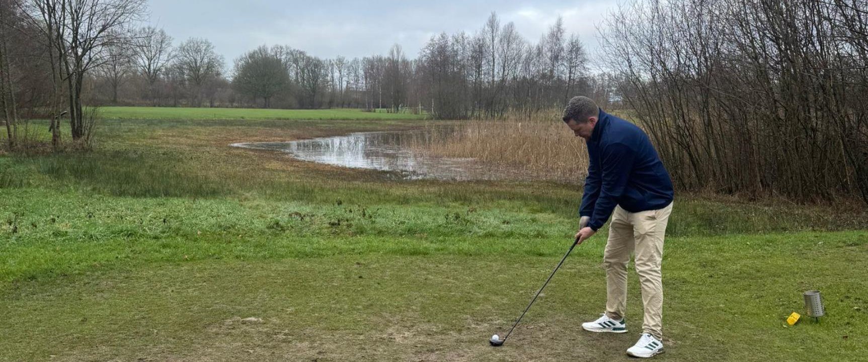 We kunnen meteen aan de bak deze ochtend, want hole 1 is op papier de moeilijkste; een par 4 met stroke index 1. Water rechts en een sloot links.