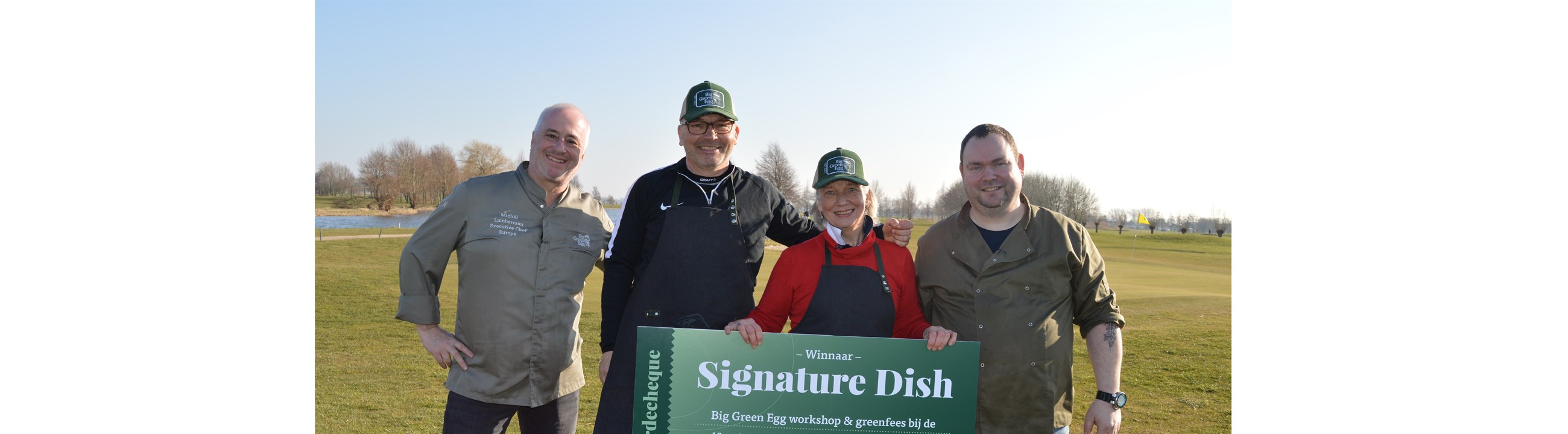 Signature Dish is een idee van GOLF.NL in samenwerking met Big Green Egg. Bij deze kookwedstrijd op een golfbaan nemen twee amateurgolfers en -koks het tegen elkaar op. In elk seizoen vindt er een battle plaats. Je kunt je als golfer opgeven voor deze kookwedstrijd door een e-mail te sturen naar redactie@golf.nl.