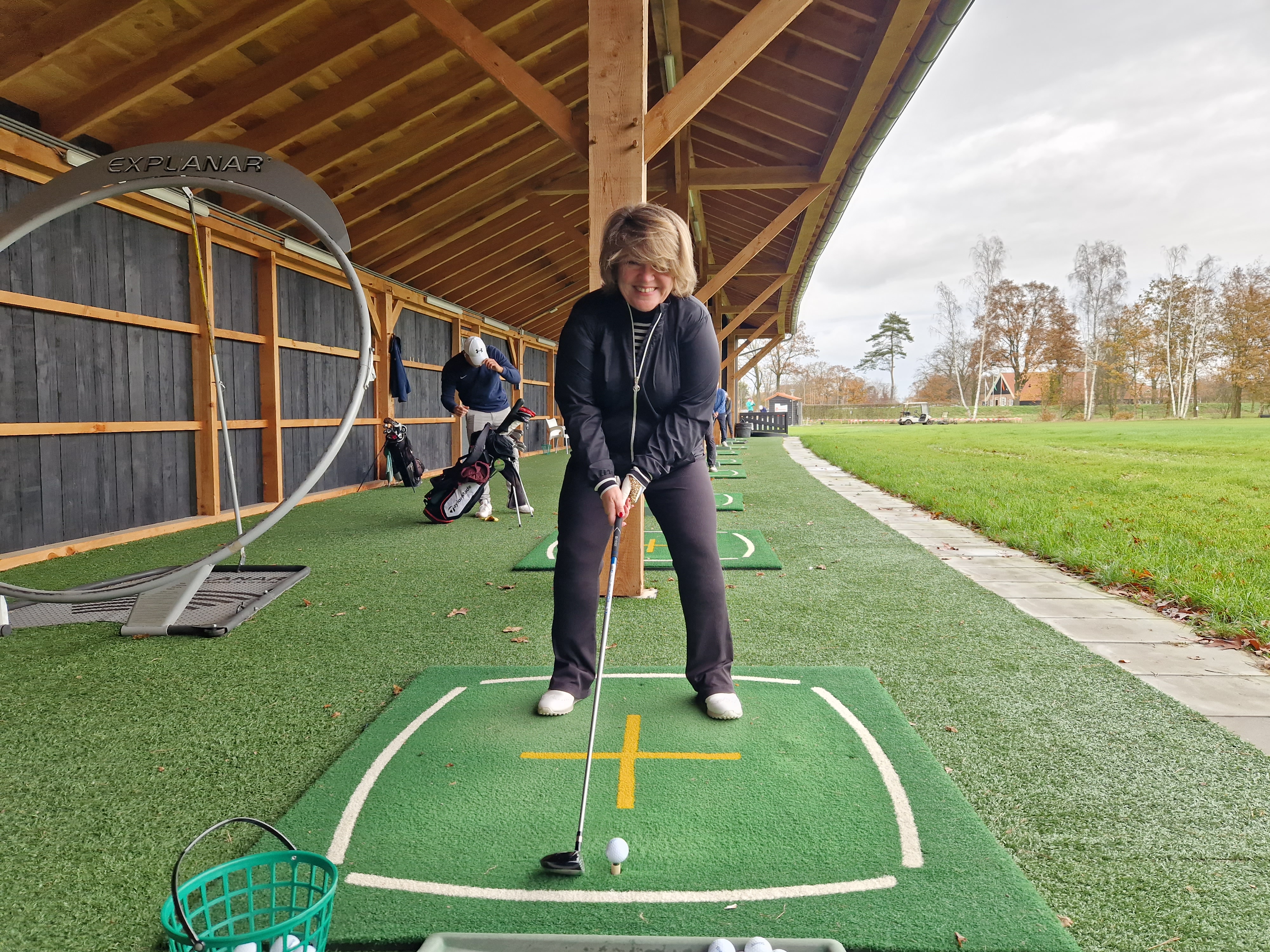Meteen daarna sla ik alle ballen als een natte krant. Ik raak de bal niet goed, waardoor hij niet recht maar strak over het gras helemaal naar rechts afwijkt. Ik zucht. “Dat had je zeker in het begin heel vaak?”, vraagt Marc. Nou, inderdaad. “Ik was niet goed in de eindhouding”, zeg ik hardop als ik weer een misser sla. “Nee, als je de hele tijd zo tegen jezelf praat, dan wordt het nooit leuk.” Van Marc mag ik niet negatief zijn. Maar het frustratieniveau stijgt bij elke ‘slechte’ bal, merk ik.