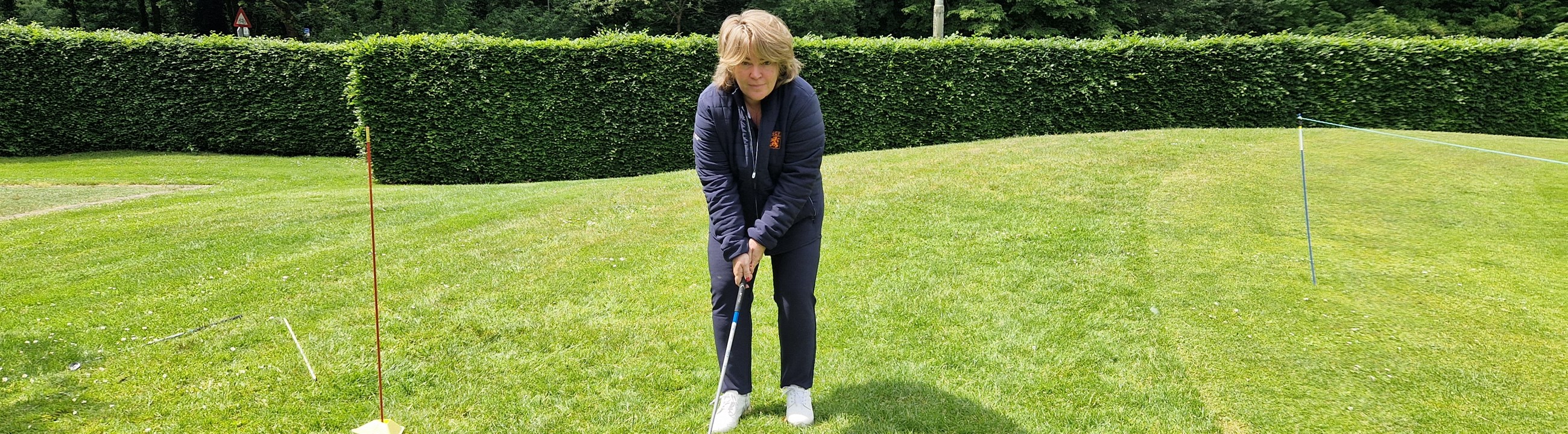 Vervolgens sla ik de ene na de andere slechte bal. Het frustreert, dus zeg ik geïrriteerd: “Wat heb je aan een goede set-up en take-away als ik vervolgens de bal niet lekker raak?” “Je wil de bal sláán, Maaike”, zegt James. “Maar je moet de doorzwaai gaan maken. Daar moet je focus op, niet op de bal.”