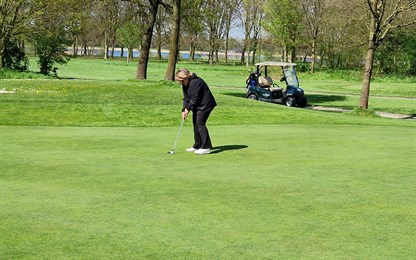 Ik zou nooit alleen naar een restaurant gaan, maar in je eentje golfen is toch iets anders. Voor mij voelt het vergelijkbaar met alleen autorijden; volledig ontspannen. Een met jezelf en je gedachten. Rust. De rugzak van rouw is zwaar, maar de golftas tors ik zonder moeite met me mee, verlicht door de fijne sport die golf is. Een balletje slaan, gestreeld worden door de zon en de aanblik van het groen. Meanderend wandelen van hole naar hole. Steeds weer een nieuwe uitdaging die op je wacht.