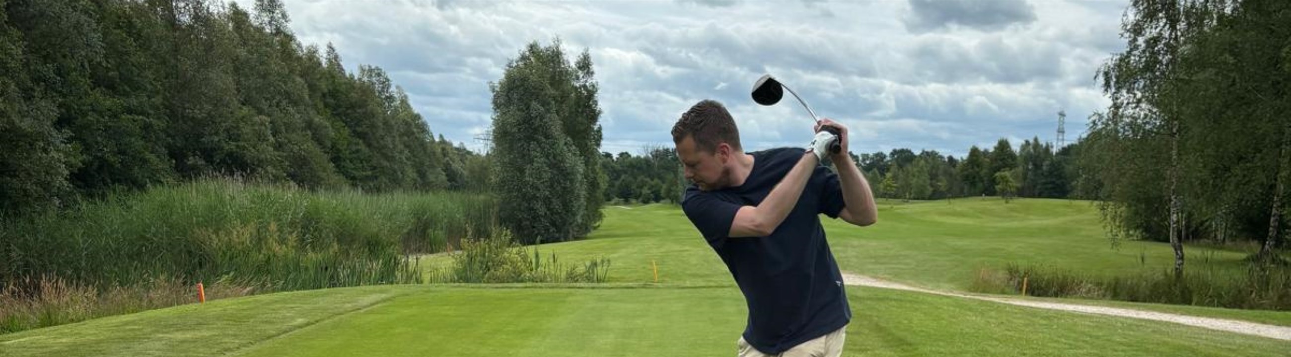 De avond ervoor appt ze me echter met onheilspellend nieuws. Het weerbericht toont bliksemschichten, harde wind en code geel. Nu dat weer… De storm beperkt zich tot een glas water, zoals wel vaker, want een dag later is het warempel heerlijk golfweer. Mooi zo, het gaat er dus toch eindelijk weer van komen: negen holes, ditmaal door mij geboekt op De Lage Mors in Delden.