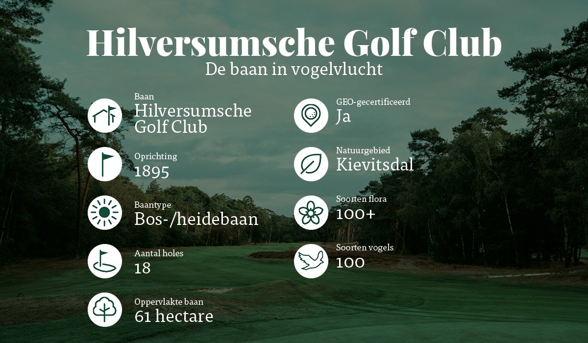 De Hilversumsche Golf Club is in 1895 opgericht en daarmee één van de oudste clubs van ons land. In 1918 streek de club neer op de huidige locatie en liet de eerste negen holes ontwerpen door Henry Burrows. Na aankoop van nog een stuk grond in 1926, waarmee de club 51 hectare en 10 hectare pachtbos bezat, kwam er ruimte voor nóg negen holes naar een ontwerp van Colt.