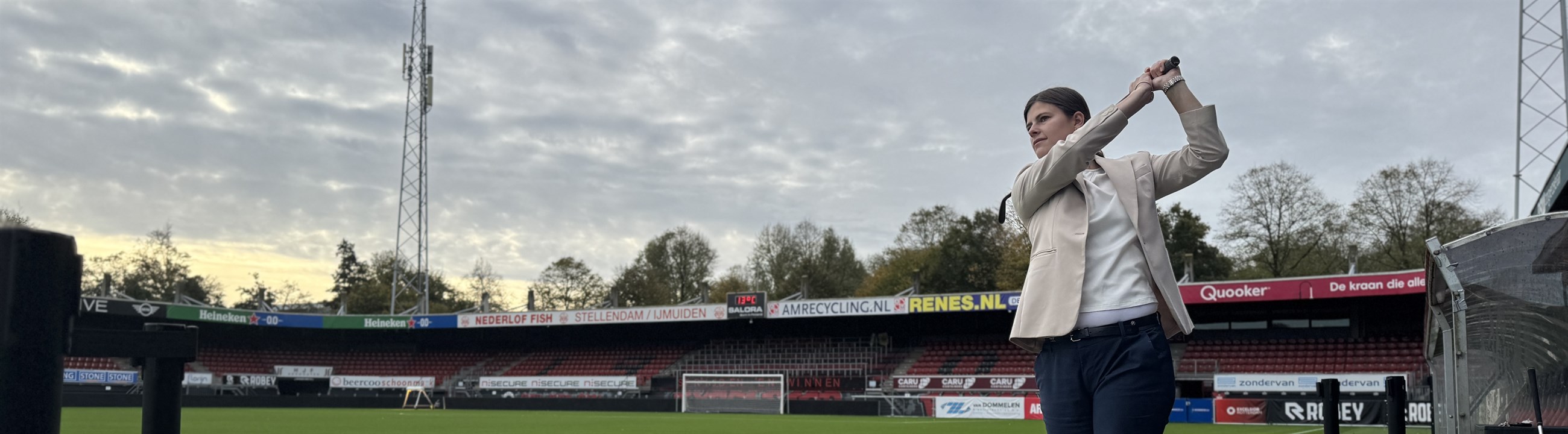 Kleedkamers zijn recent verbouwd en het spelershome en de businessruimte worden doordeweeks ook ingezet voor andere gelegenheden. Elke vierkante meter wordt benut. En net als in de Kuip van grote ‘broer’ Feyenoord geldt ook hier: het gras in het stadion is heilig. Voor een foto op het veld moet eerst toestemming worden gevraagd van de groundsman. Zijn waakzaamheid over het gras vergelijkt Anouk met de passie van de greenkeepers die ze vaak genoeg aantrof op de golfbaan. Those were the days…