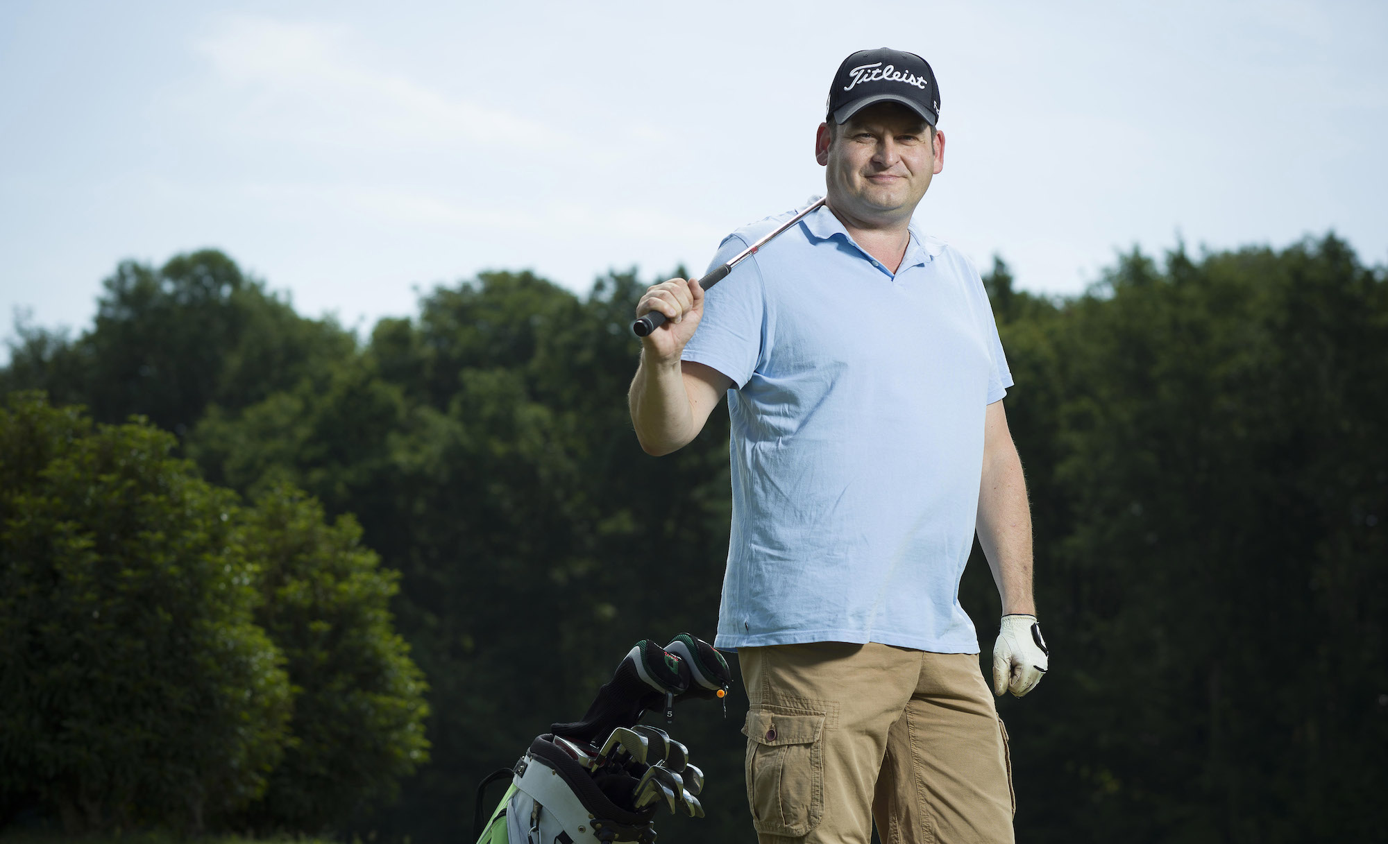 "Ik was 33 jaar toen ik met golf begon. Op een clinic tijdens de Open Golfdagen werd ik meteen enthousiast. De pro zei dat ik aanleg had en ik voelde al snel dat het me kon helpen om rust te vinden. En die was nodig. In 2007 kreeg ik, als veteraan gediend in diverse uitzendgebieden waaronder voormalig Joegoslavië, de diagnose posttraumatische stressstoornis (PTSS). Het lesgroepje waarmee ik toen speelde, beviel goed. Het waren wat oudere, rustige mensen bij wie ik me veilig voelde. Golf bracht me momenten van ontspanning in een verder chaotisch leven met PTSS, een scheiding, onzeker werkperspectief en financiële problemen. Die problemen leidden ertoe dat ik in 2008 stopte met golf."