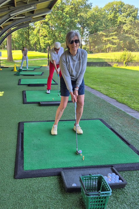 Het nestelt zich in mijn brein en vervolgens sla ik de bal júíst de baan uit