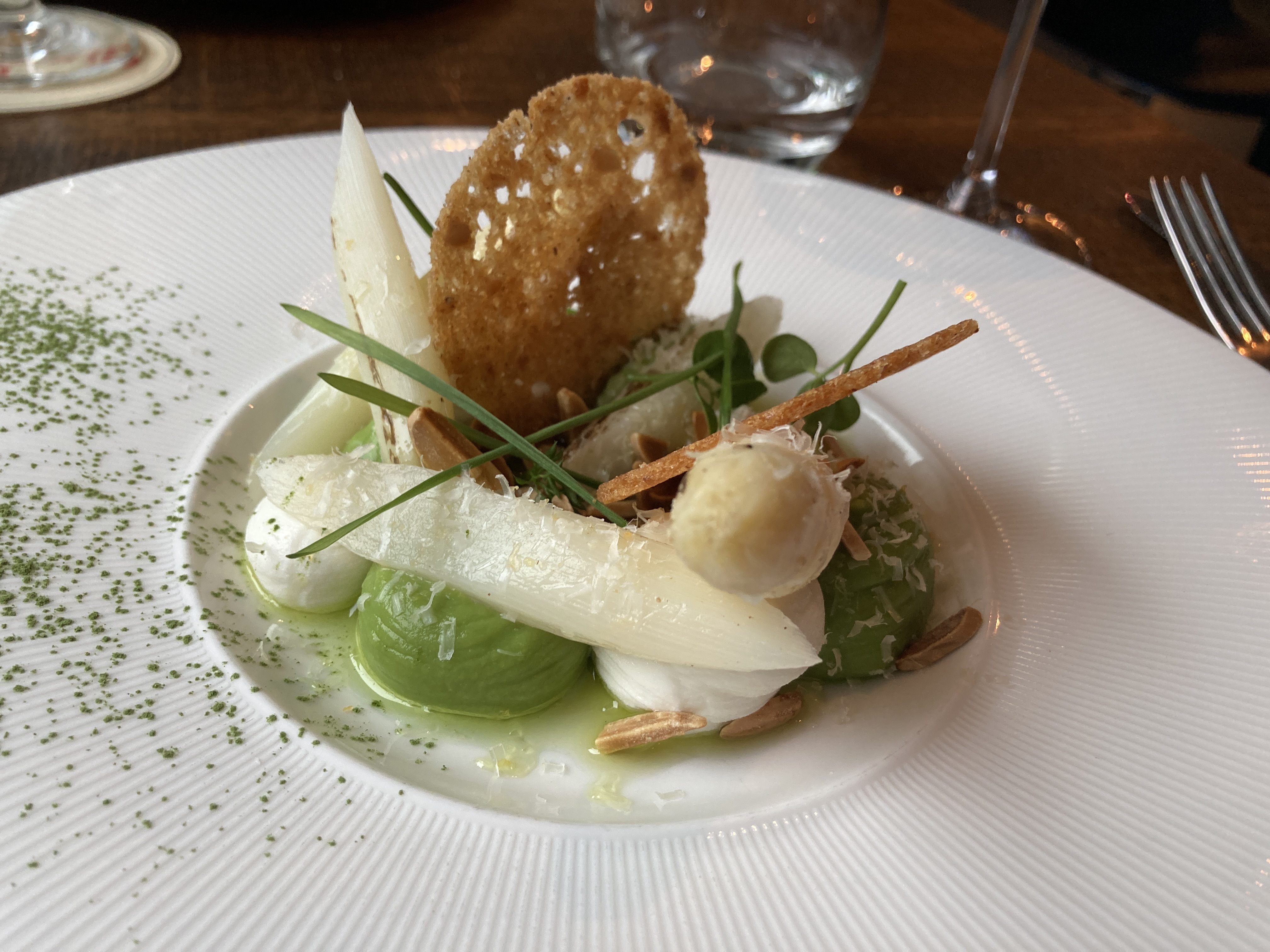 Een 3-gangen verrassingsmenu van chef Arjen Bonder en zijn brigade bevat prachtige ingrediënten. Schilderijtjes worden ons voorgeschoteld met verrassende combinaties. 'Asperges van de buurman, geitenkaas mousse en doperwtencrème met een kletskopje van Parmezaanse kaas’ gevolgd door een ‘open ravioli met geplukte eend en een schuim van gember, fijngesneden witlof en rode biet’ en als dessert een ‘crème van aardbei en magnolia, rabarber ingelegd in roze pepertjes, dragon en witte chocolade rotsen’. Bij de koffie krijgen we schilderijtjes van huisgemaakte paaseieren.