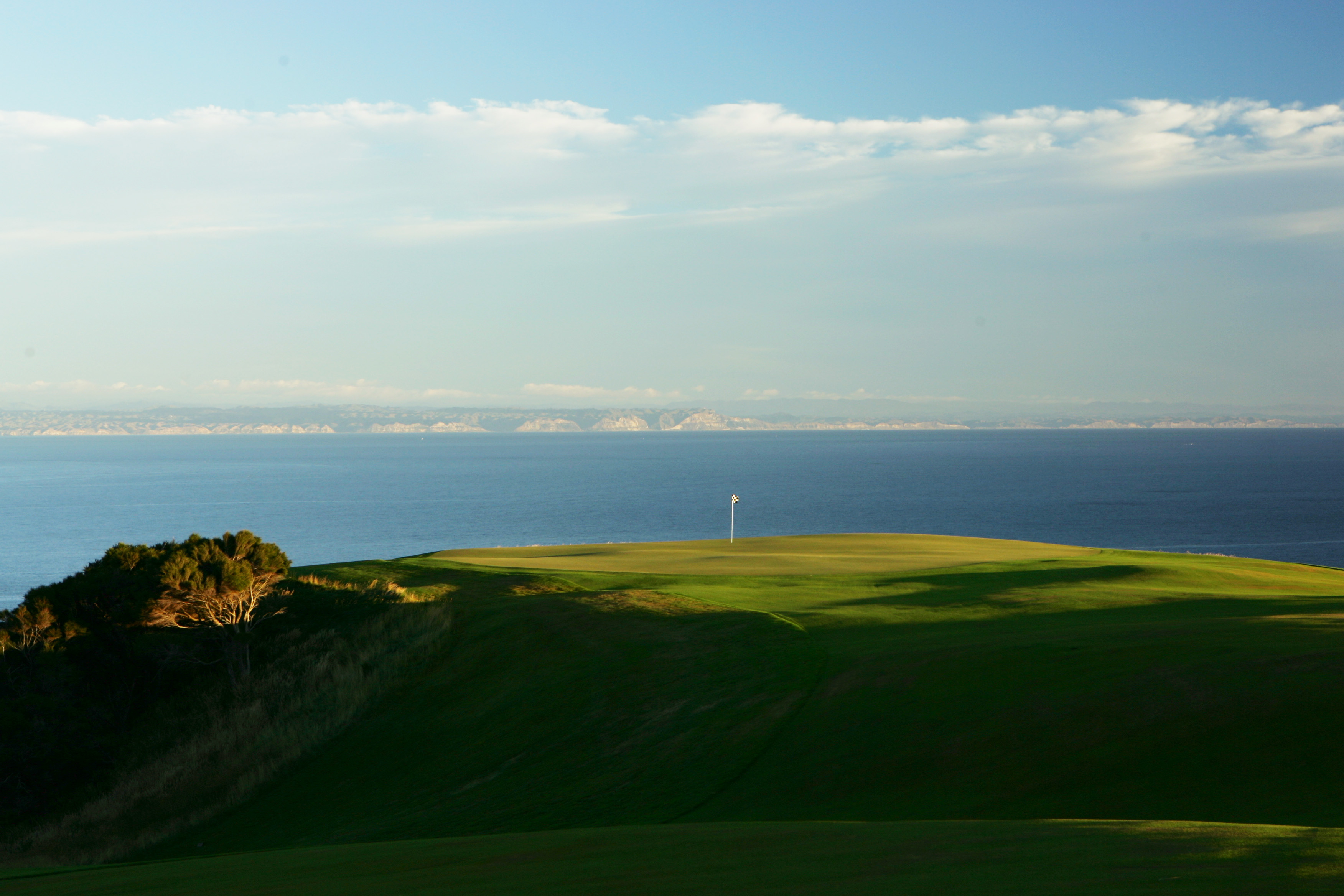Op hole 12 helt de green zo naar de afgrond dat je ook hier op de tee het gevoel hebt de bal in het oneindige te kunnen verliezen… "Bij het aanleggen van deze golfbaan hebben we veel van Moeder Natuur gekregen”, zegt Doak over zijn eigen creatie, die in 2004 werd geopend en een lengte heeft van zo’n 6400 meter. “Deze plek had van zichzelf al veel drama. Daar was niet tegen op te boksen, dus hebben we er maar zo veel mogelijk gebruik van gemaakt. Er is geen vergelijkbare plek van deze grootte en zo hoog boven de oceaan.”