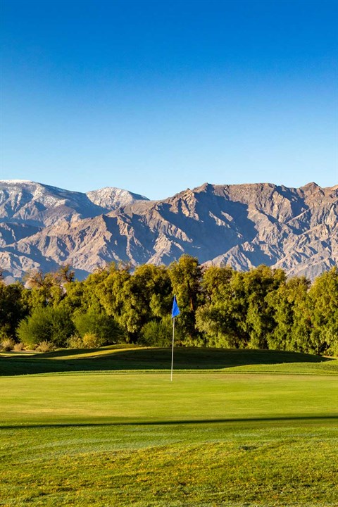 De baan is vlak. Een par-70 van iets meer 5.600 meter. De kale bergen zie je op de achtergrond, een fascinerend vergezicht. Begroeiing op de baan kan je in de weg zitten, palmbomen onder meer. Maar veel water is er niet in de woestijn van California, zou je zeggen, dus daar heb je dan geen last van. Dat is maar ten dele waar. Op de golfbaan is er zelfs een natuurlijke waterbron, de levenslijn van de Furnace Creek Golf Course. Dus kun je hier zelfs je bal in het water verliezen. “Je verwacht hier in de woestijn geen golfbaan, maar daarom heet de plek ook The Oasis. En we bewateren de baan uit eigen vijvers”, aldus John Skaggs, golfprofessional op de baan en manusje-van-alles.