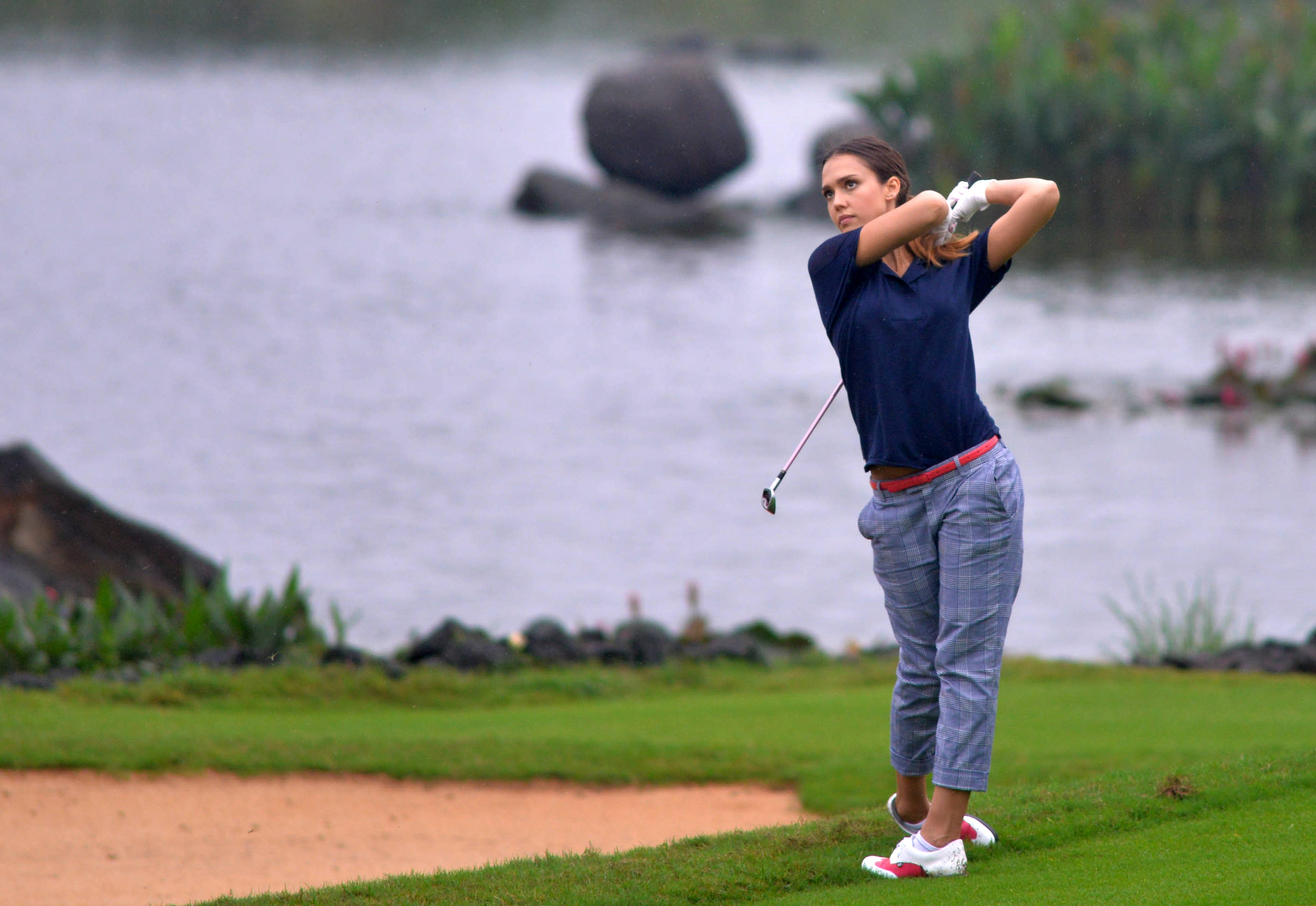 Inmiddels zijn er ruim 100 internationale toernooien gespeeld, deed de 41ste World Cup in 1995 dienst als mooi toeristisch uithangbord om het golftoerisme naar China aan te wakkeren en breidde Mission Hills in 2011 bijna 700 kilometer verderop het golfparadijs uit met nog eens tien banen op het eiland Hainan. Het is natuurlijk een beetje valsspelen, maar nu claimt Mission Hills met 22 banen de grootste ‘golfclub’ ter wereld te zijn. Meerdere World Cups voor landenteams voltrokken zich op de banen van dit golfpretpark. Golfende filmsterren, zoals Jessica Alba (foto onder), Michael Douglas en Nicole Kidman, zijn er kind aan huis en ook Tiger Woods kwam - ongetwijfeld voor veel geld - er al eens een wedstrijdje spelen tegen Rory McIlroy.