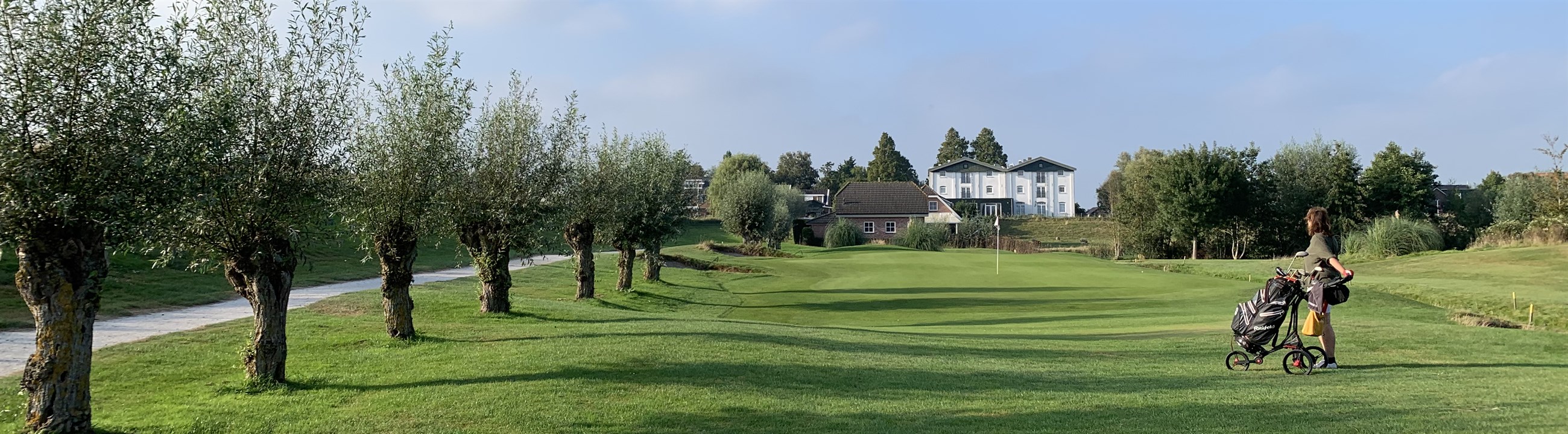 We worden zeer hartelijk ontvangen in de ruime golfshop. Shoppen doen we er echter niet, want we hebben een strak budget van precies € 250. De dame achter de receptie zoekt onze starttijd op, die ik ruim een week daarvoor al had gereserveerd via GOLFGO op de GOLF.NL app. Ook geeft ze ons een kaartje van de baan en wijst ons op de pinposities op de greens. Ik doe alsof ik ze aandachtig bekijk en kijk uit naar de dag dat die informatie ook echt relevant is voor mij. Vandaag is voor mij 'op de green' al goed genoeg, and I'll take it from there!