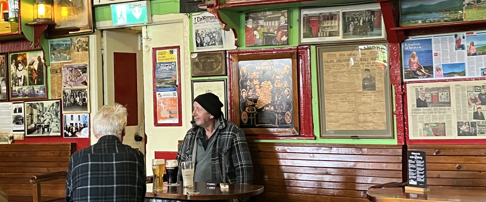 Om meerdere redenen leek Dingle ons een droombestemming. Het is de meest westelijk gelegen golfbaan aan de Wild Atlantic Way, de 2500 kilometer lange kustweg met adembenemende uitzichten over de oceaan, steile kliffen en robuuste eilanden voor de kust. Dit is Ierland op zijn puurst en rauwst. Bovendien staat in Dingle een vermaarde distilleerderij, waar whiskey, gin en wodka wordt gemaakt. Helaas tijdens ons bezoek niet voor publiek geopend, maar de sterke drank wordt natuurlijk wel volop in lokale pubs geschonken.