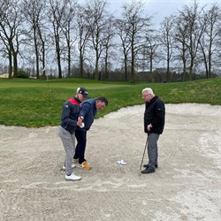 “Doordraaien, doordraaien, doordraaien”, is de voornaamste tip van caddie en vader Rein. Het werkt fantastisch, want elke bal komt mooi de bunker uit. “Daar gaan we eigenlijk ook altijd voor”, vertelt Morley, terwijl Ronald knikt. “Voor blinde golfers is de bunker eigenlijk de hel. Daarom willen we er vooral voor zorgen dat de bal er in één keer uit gaat. Vanaf daar zien we wel verder.”