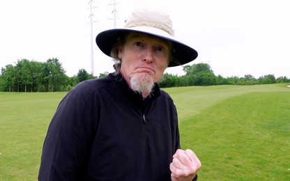 Nog voordat de eerste bal is geslagen vraagt de 77-jarige Jan: "Mag ik een mulligan?" Begrijpelijk, want een afslag naar links wordt hard gestraft. Maar helaas voor hem, dit is zijn stroke index 1 en dat willen we dan ook graag zien.