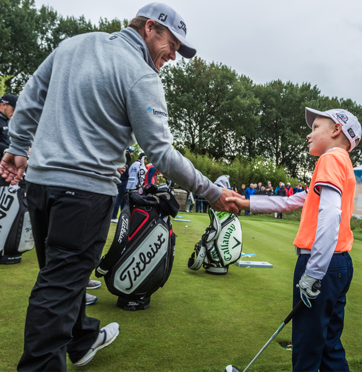 During the KLM Open a number of amateurs can hit a ball on hole 14 (par-3) on Thursday, Friday and Saturday. As soon as the pro's walk up the tee, the amateur joins the flight. After the pro's turn, the amateur may try to hit a ball closer to the hole. If successful, he/she is not only the hero of the day, but he/she also wins two KLM airlines tickets to a destination of their choice in Europe. Do you want to participate in Beat the Pro? In that case check our website and social media regularly to see when you have the chance to qualify yourself.
