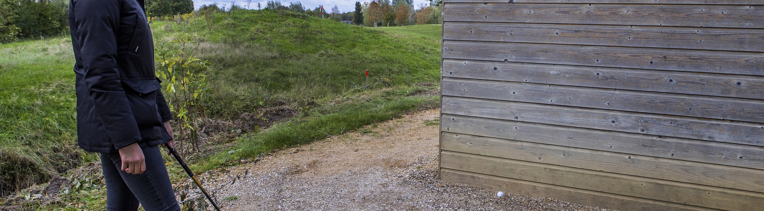 Als voorbeeld nemen we een schuilhut (foto). Dit is een vast obstakel dat is geplaatst om golfers te helpen om zich snel in veiligheid te kunnen brengen bij slecht weer. Het kan dus gebeuren dat je met slag of stand hinder ondervindt van de schuilhut, maar het kan ook zijn dat het vaste obstakel alleen je speellijn belemmert. Er is sprake van een belemmering, en dus een vrije drop, in de volgende gevallen: