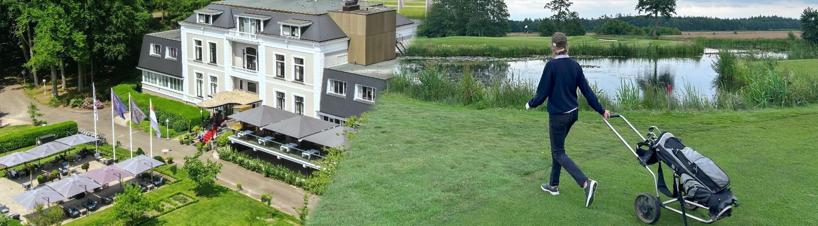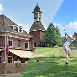 Eerst goed lunchen, want we hebben vernomen dat je na het spelen van deze lange baan verscholen in het bos, minstens 10 kilometer in de benen hebt. We nuttigen een clubsandwich en kroketten in bistro Nijeholt (ook in het hotel), die is bekroond met een Bib Gourmand. Vanaf onze tafel aan het raam kijken we uit op het ooievaarsnest in de tuin, waar een ouderpaar af- en aanvliegt met visjes voor hun jong.