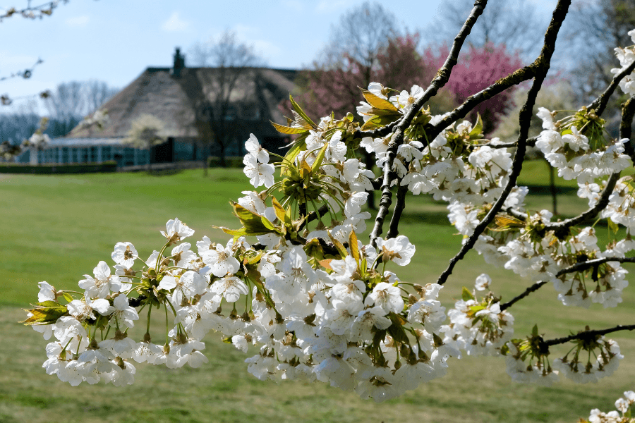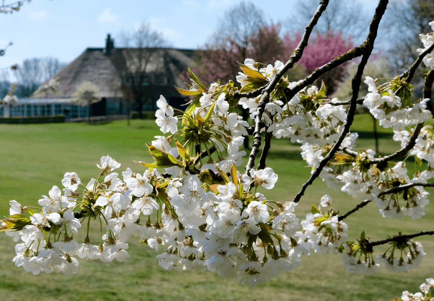 Een van de eerste duidelijke tekenen van het voorjaar is bloesem. Fruitbomen staan vaak al vroeg in bloei en kleuren het landschap wit en zachtroze. Op sommige golfbanen groeien zelfs appel-, peren- en kersenbomen. Zo staan er bijvoorbeeld op Golfbaan De Batouwe, midden in de Betuwe, verschillende fruitbomen die in het voorjaar in bloei komen. De bloemen verschijnen vaak nog voordat de bladeren groeien en vallen daardoor extra op tussen het frisse groen van de baan. Bloesem is niet alleen een mooi gezicht na de winter. De bloemen bevatten nectar en stuifmeel en vormen een belangrijke voedselbron voor insecten die na de koude maanden weer actief worden. Wie langs een rij bomen bij een pad of langs een speelbaan loopt, hoeft vaak alleen maar even omhoog te kijken. Zie je witte of roze bloemen verschijnen, dan weet je dat het voorjaar begonnen is.