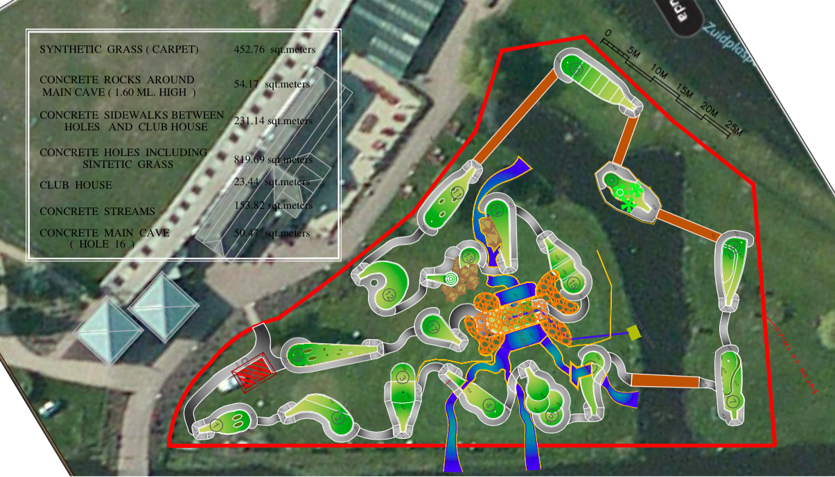 Op de huidige locatie van één van de bestaande putting greens van IJsselweide wordt daarom een spectaculaire 18 holes-mini golfbaan aangelegd. De Meijer: ‘In het midden een grot met een waterval en daaromheen achttien uitdagende holes.’