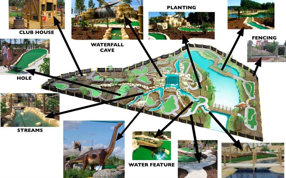 Adventure golf komt oorspronkelijk uit de USA en werd in 2008 succesvol in het Verenigd Koninkrijk geïntroduceerd. Michel de Meijer: ‘Het is daar inmiddels een snelgroeiende vorm van recreatie. Ik heb een aantal golfbanen in Florida bezocht die een 18-holes adventure golfbaan hadden aangelegd. Daar kon ik twee uur 18 holes putten op schitterende kunstgrasholes met diverse moeilijkheidsgradaties in een bepaald thema. Deze thema’s varieerden tussen piraten, jungle en dinosaurussen. Dit bracht me op ideeën.’