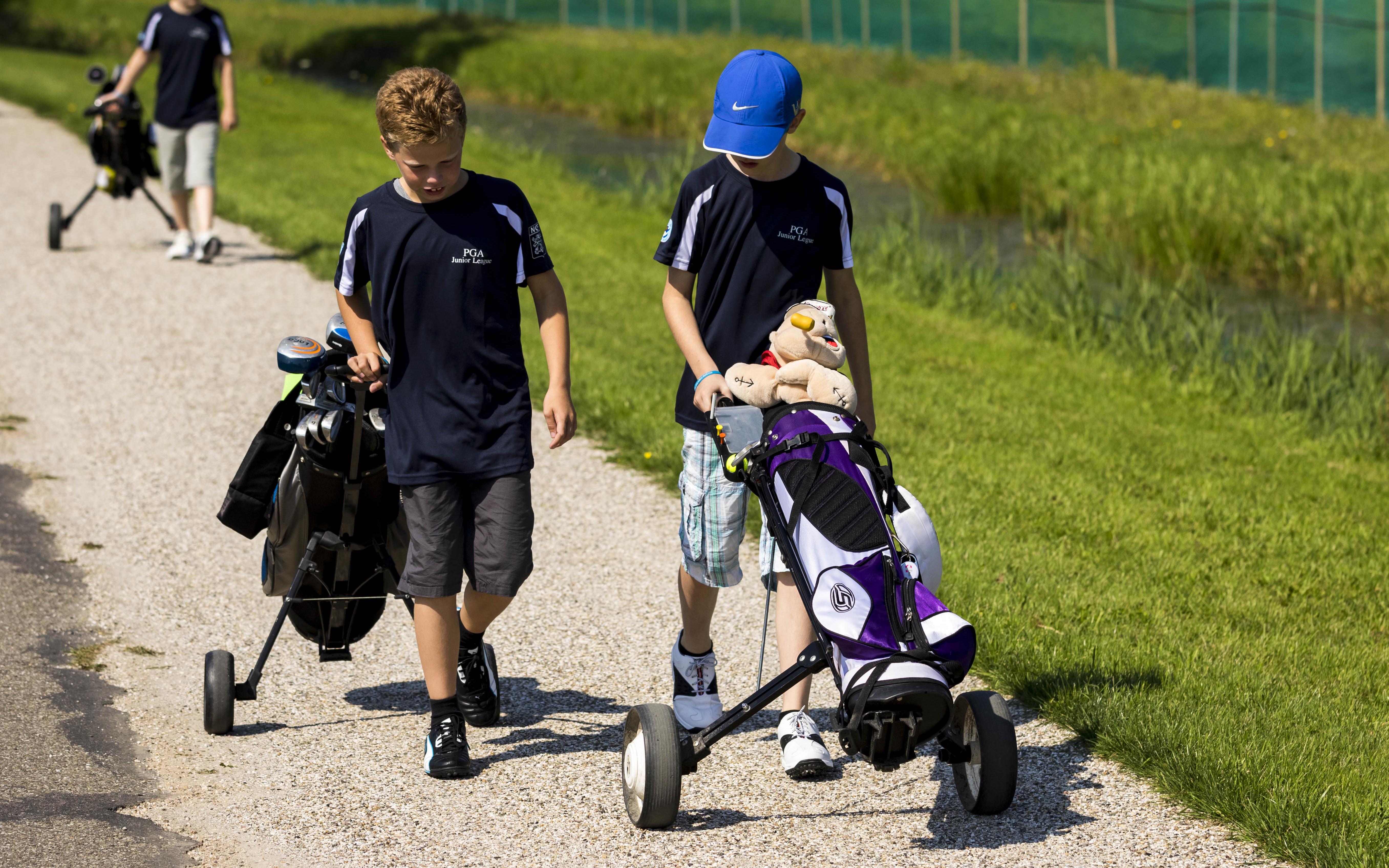 De PGA Junior League is een competitievorm waarbij teams van spelers tot en met 13 jaar het opnemen tegen andere teams. Alle spelers krijgen hun eigen shirt met rugnummer en zij krijgen een leuk polsbandje in een kleur naar keuze. Er worden 9 holes gespeeld waarbij paren van twee spelers een Best Ball Matchplay variant spelen tegen twee spelers van het andere team. Na elke drie holes, een ‘Flag’ genoemd wordt het aantal slagen per paar geteld over die drie holes waarna de punten worden verdeeld: 1 voor de winnaar, ½ bij gelijke stand en 0 voor de verliezer. Over negen holes kunnen dus per koppel maximaal 3 punten worden verzameld. Het totaal aantal punten per team bepaalt wie het winnende team is. Na elke drie holes mag een teamspeler worden gewisseld als deze bijvoorbeeld moe is, blaren heeft of geen zin meer heeft.