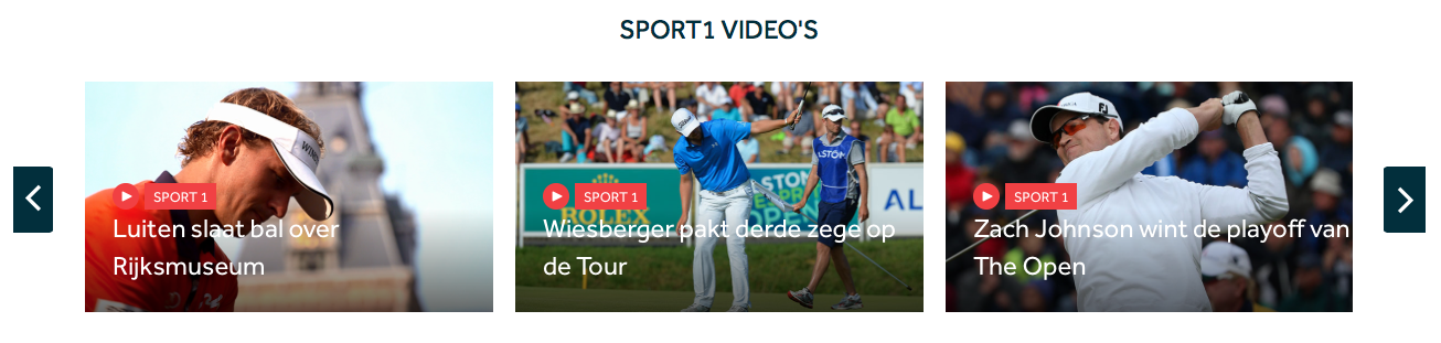 In deze balk worden altijd de laatste 12 video's van Sport1 Golf getoond. Je kunt door de video's heen scrollen door op de knoppen aan de zijkanten van de video's te klikken.