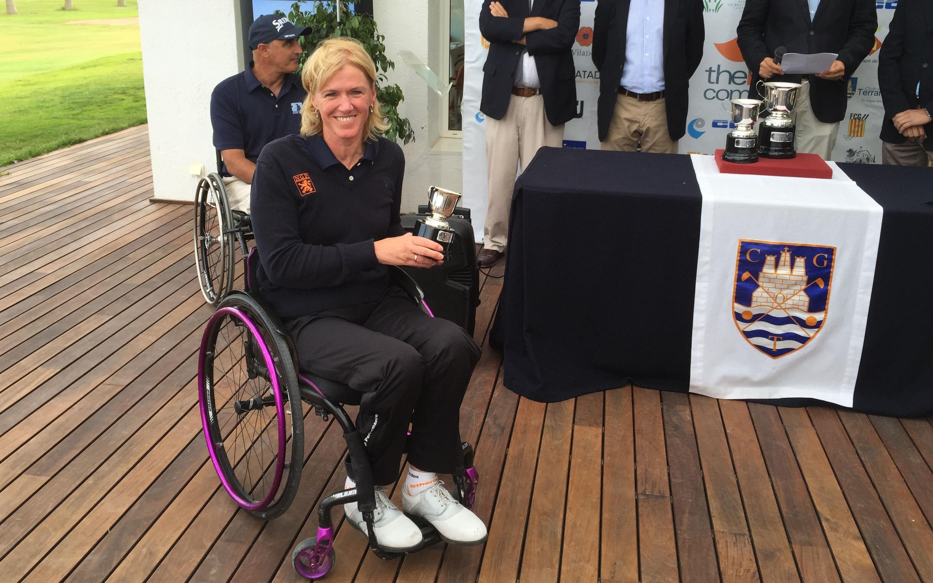 Kluwen heeft MS (multiple sclerose) en speelt pas sinds een jaar in een paragolfer. Zijn spel van tee tot green was volgend NGF-coach Edward de Jong uitermate verzorgd en op de belangrijke momenten wist hij de putts te maken.