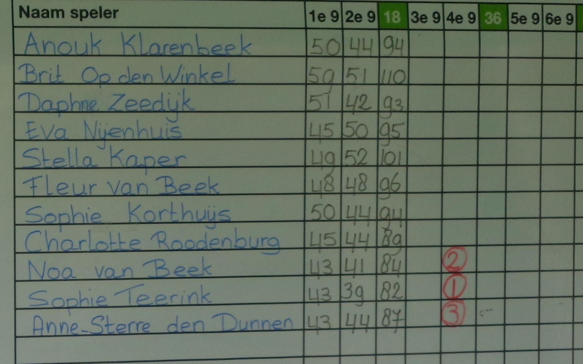 Noa van Beek werd tweede met 84 slagen, twee slagen meer dan de kampioen. Haar zusje Fleur, nog maar negen jaar oud, werd negende.