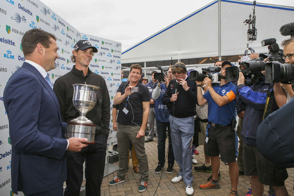 Je wint het KLM Open in 2015, de champagne wordt ontkurkt, je ontvangt een cheque en de beker. Daarna met een brede glimlach naar huis? Niet helemaal. Fotograaf Ronald Speijer ving Thomas Pieters na zijn laatste putt op en volgde de trotse winnaar in de hectische uren die volgden. Een beeldverslag.
