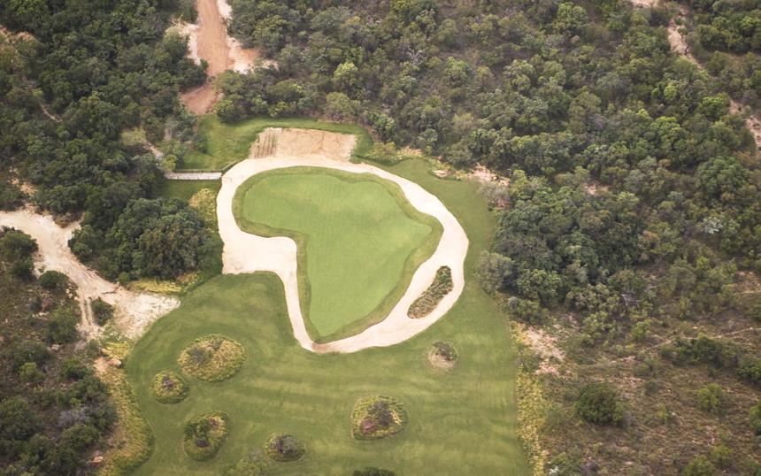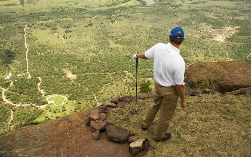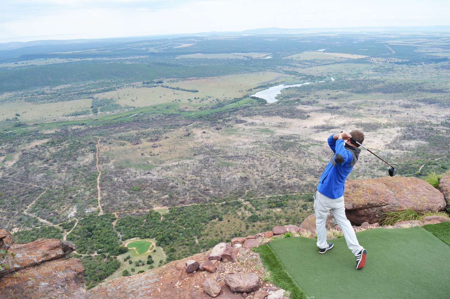 De Extreme 19th is de hoogste en langste par drie ter wereld. Woorden kunnen nauwelijks beschrijven met welk gevoel je, na een duizelingwekkende helikoptervlucht van krap een minuut, op vierhonderd meter hoogte op een afslagmat op Hanglip Mountain staat. Met trillende benen stonden we op de rand van de afgrond naar de green te kijken die is gemodelleerd naar de vorm van het continent Afrika. Elke dag staat de pinpositie in een ander land. Dus niet 14 van voren en 32 van links, maar in Tsjaad of Gabon. De afstand van de hole? Een miezerige 361 meter. Het mooie is dat je maar liefst zes pogingen krijgt om een bal op de green of in de buurt daarvan te krijgen. Het gaat echter wel om de score. De 375 euro die deze ervaring per persoon kost, is misschien veel – en zeker in een land als Zuid-Afrika – maar wat ons betreft was dit het dubbel en dwars waard. Wil je weten hoe onze verslaggever deze angstaanjagende hole heeft overleefd? Lees dan zijn uitgebreide verslag in het komende magazine!