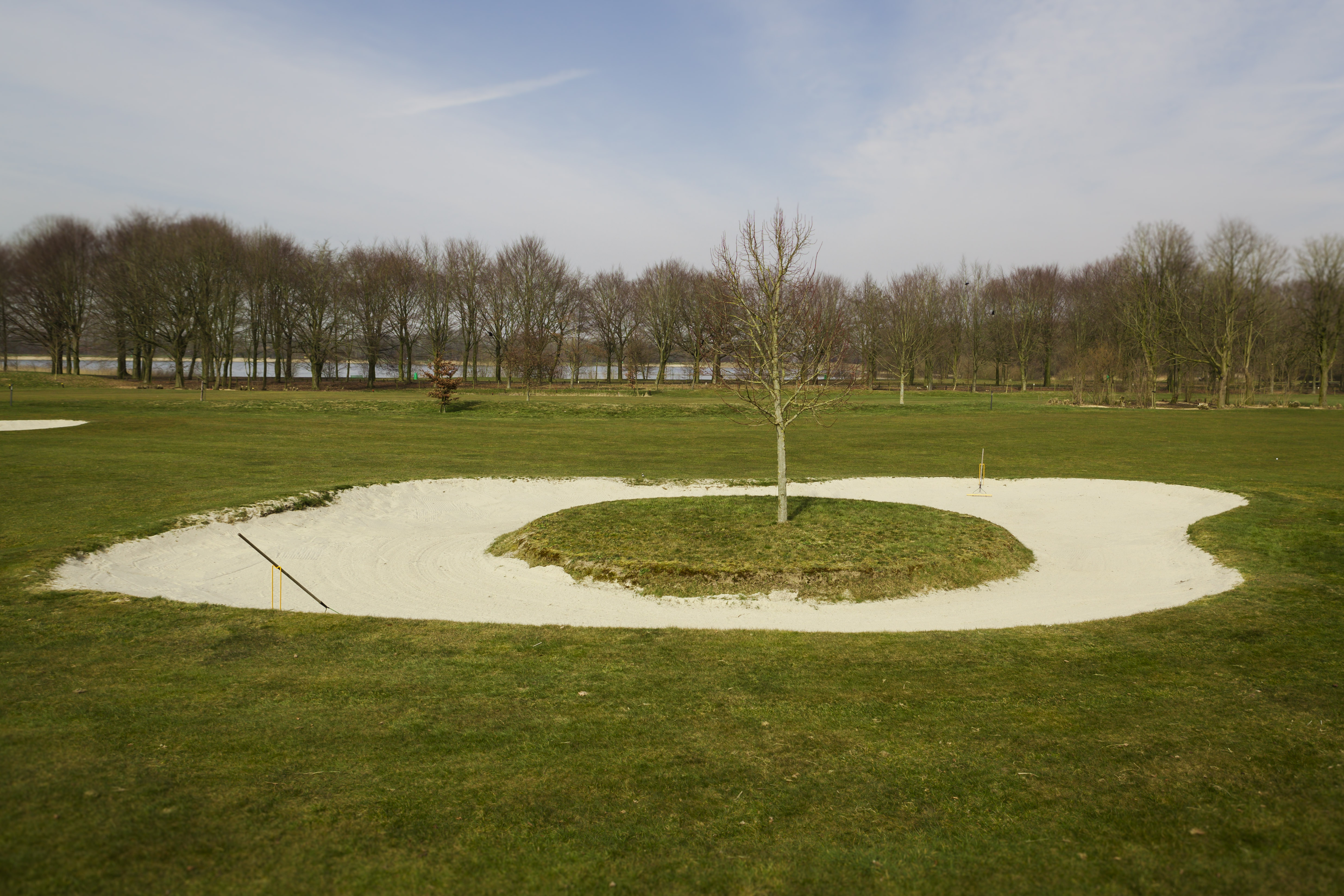 Er is in Nederland meer dan één bunker met een boom(eilandje) midden in de hindernis. Deze situatie tref je onder meer aan op hole 3 van de 9-holes baan van Golfcomplex de Breuninkhof bij Apeldoorn.