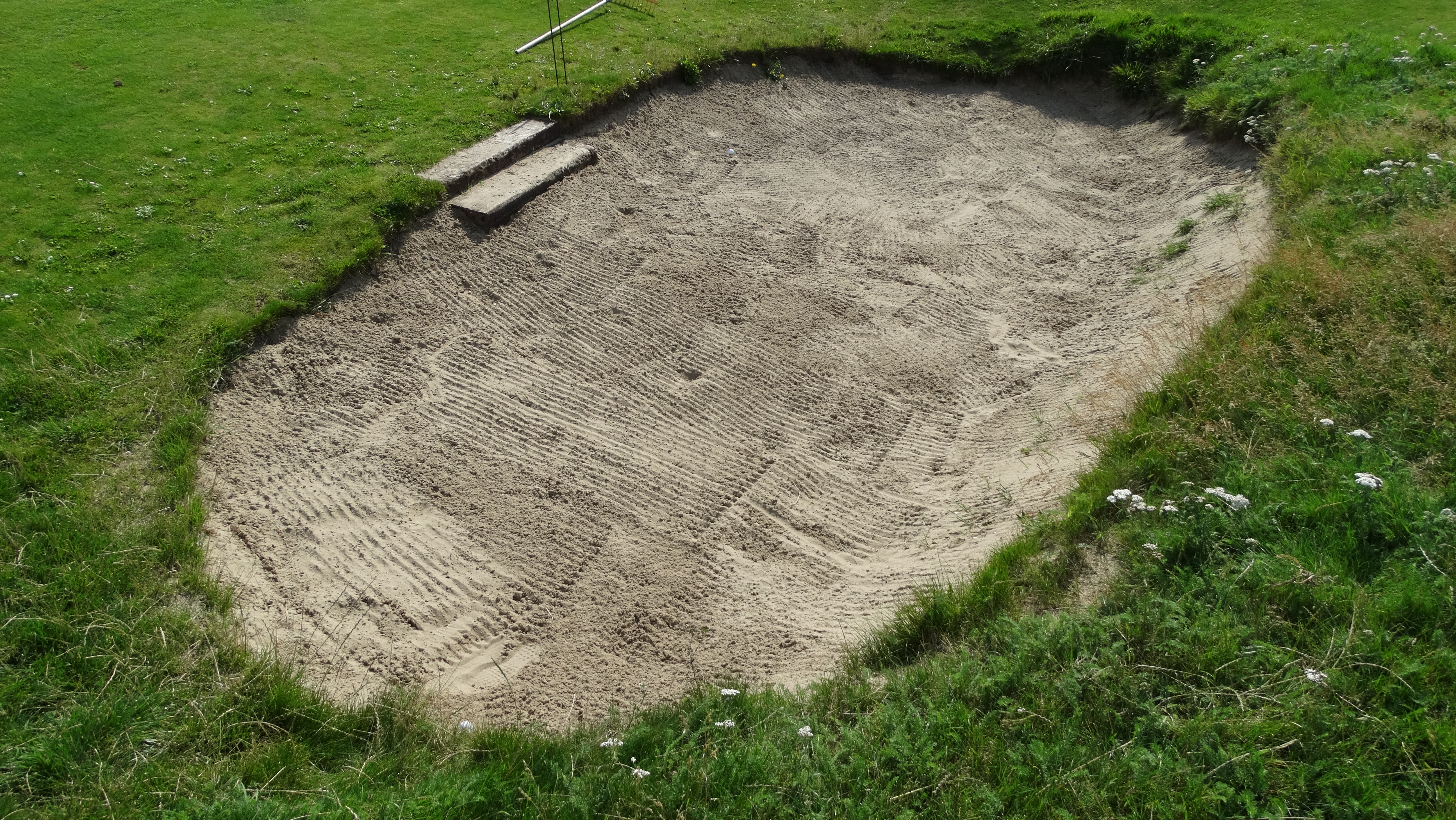Je ziet het in Groot-Britannië en Ierland heel vaak maar in Nederland is het vrij zeldzaam: een bunker met een trapje om erin en eruit te komen. Deze bunker is te vinden op Open Golf Zandvoort.
